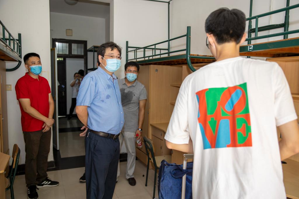 9月4日,我校迎來了全國31個(gè)省份及港澳臺(tái)地區(qū)的2021級(jí)新生。校黨委書記張土喬,黨委副書記程剛,副校長葛洪良、王迪釗,校黨委委員、研究生院院長、現(xiàn)代科技學(xué)院黨委書記張勇及相關(guān)部門負(fù)責(zé)人來到迎新現(xiàn)場,對(duì)各位新生和家長表示歡迎,向工作人員和志愿者表示慰問,并詳細(xì)了解招生和報(bào)到情況。在學(xué)生寢室,他們親切詢問新生家在哪里,入住是否順利,對(duì)大學(xué)生活有怎樣的期待。