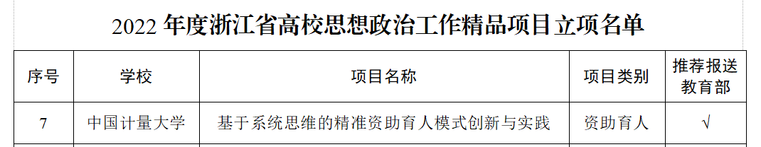 近日,浙江省教育廳公布了2022年度省高校思想政治工作有關培育建設項目立項名單,我校2個項目入選立項。其中,資助育人項目《基于系統思維的精準資助育人模式創新與實踐》入選思想政治工作精品項目名單并獲批向教育部推薦,法學院姚昱帆入選省高校網絡教育名師培育支持計劃立項名單。