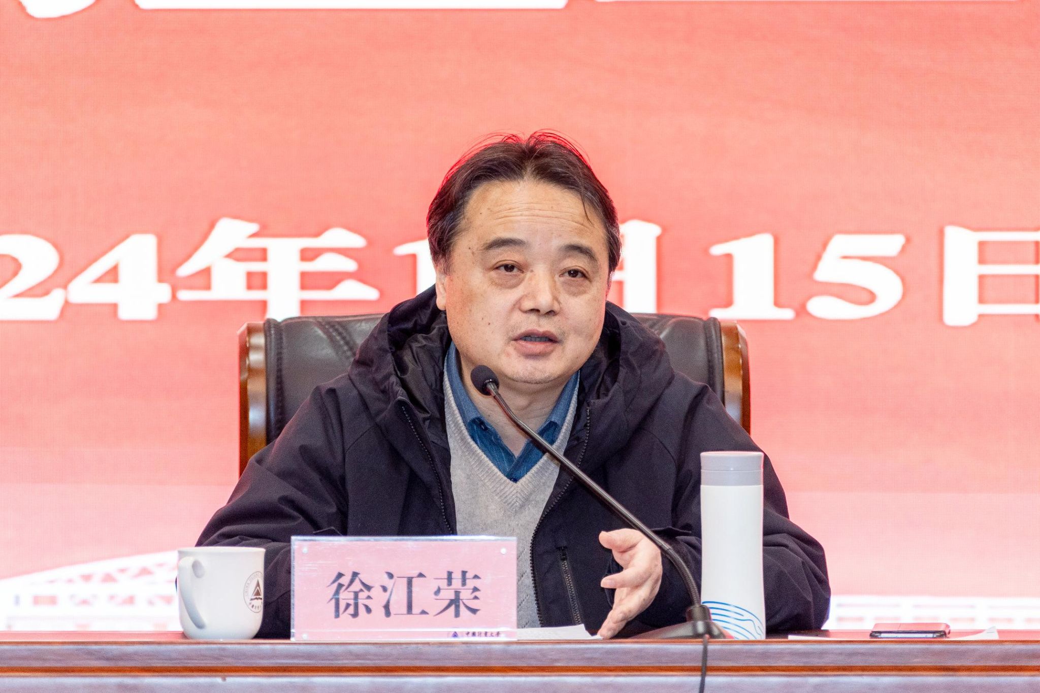 為全面貫徹黨中央、國務院決策部署,認真落實全國和全省普通高校2024屆畢業生就業創業工作會議精神,總結交流學校2023年畢業生就業創業工作的成績和經驗,動員部署學校2024屆畢業生就業創業工作,1月15日上午,我校在聞廳二樓報告廳舉行2024屆畢業生就業創業工作會議。校長徐江榮、校黨委副書記程剛、副校長王新慶等校領導出席會議,會議由程剛主持。