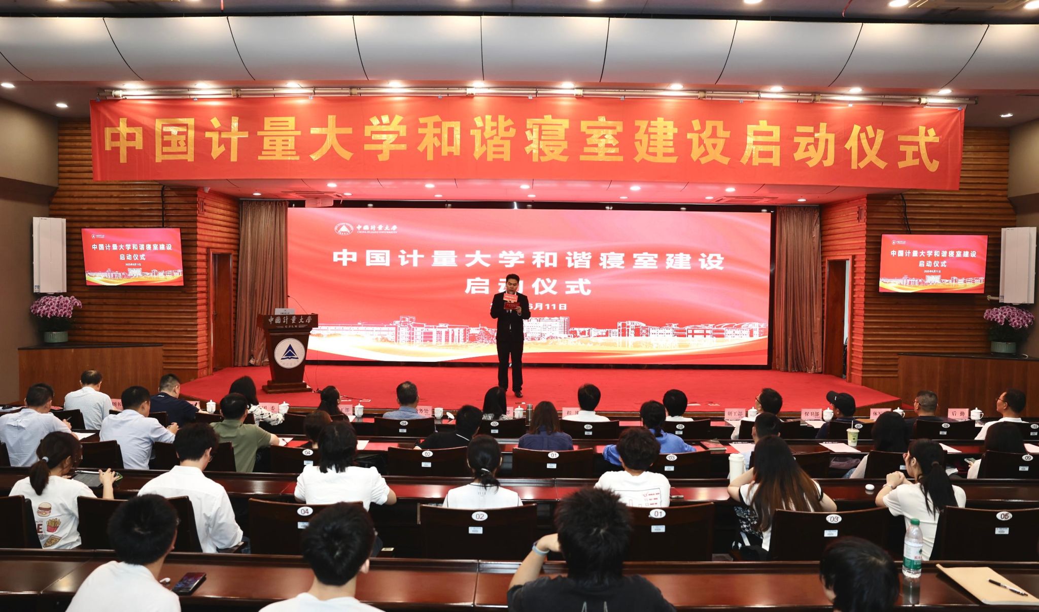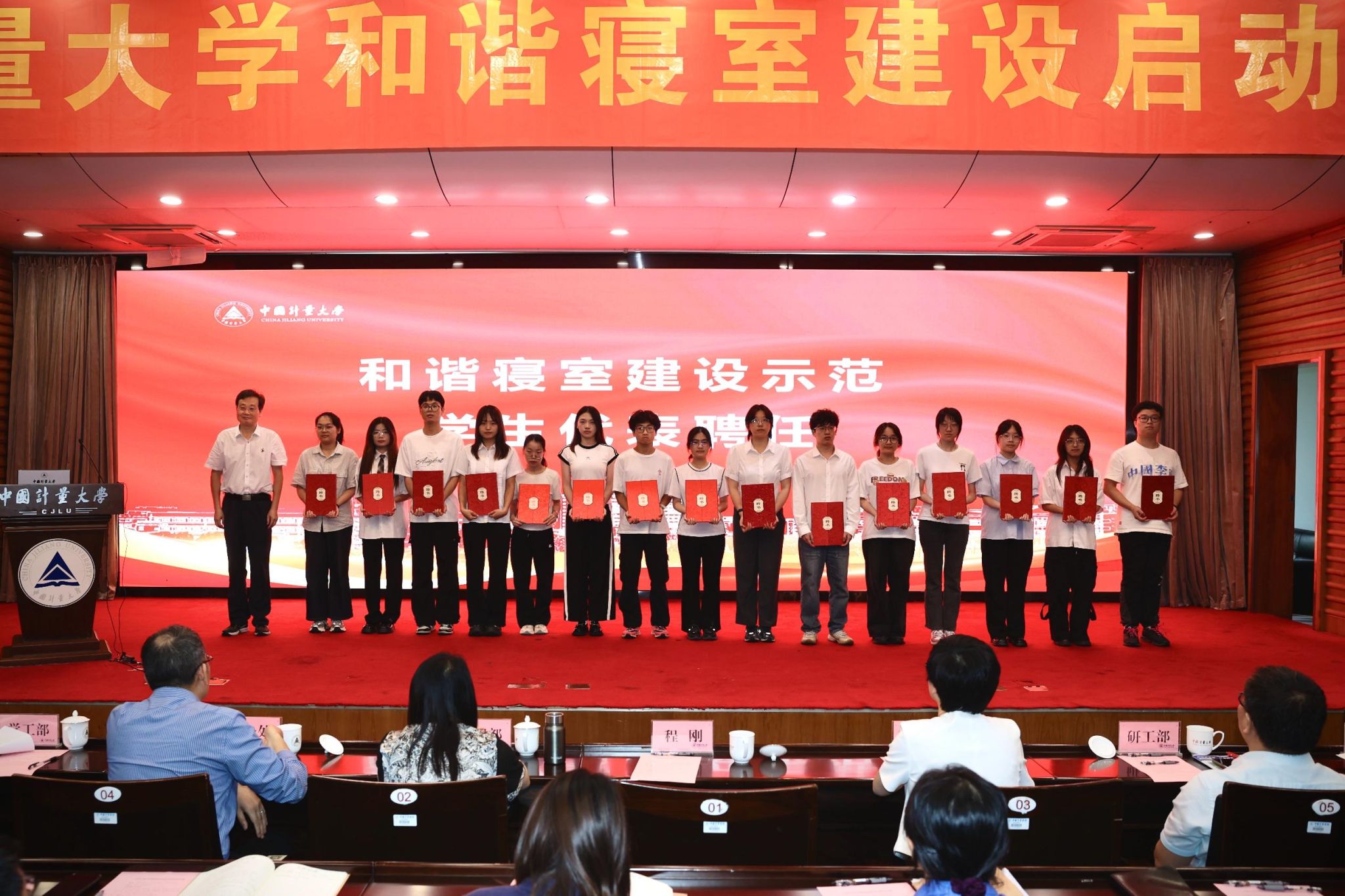 啟動儀式上,15名優秀學生受聘校級和諧寢室建設示范代表?!胺阑鸱涝p騙,演練共參與;作息互尊重,靜音守安寧;學業互幫扶,困難共分擔;黨員做表率,社區多志愿……”現場150余名學生代表齊聲宣讀了首發的《中國計量大學和諧寢室學生公約》。