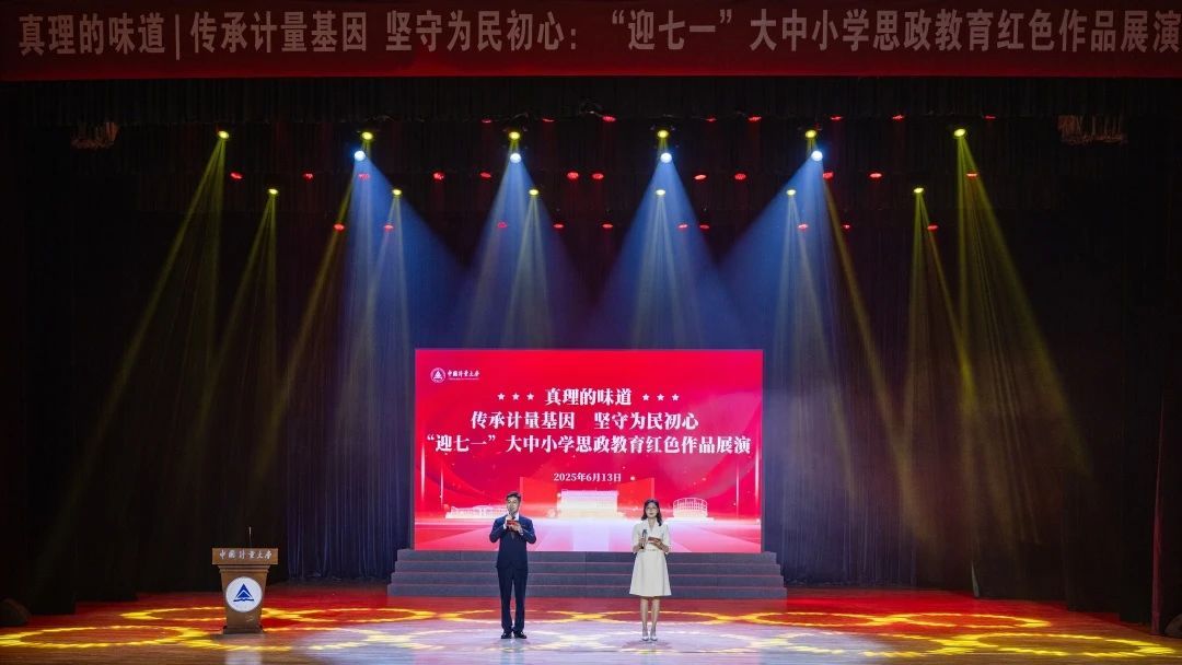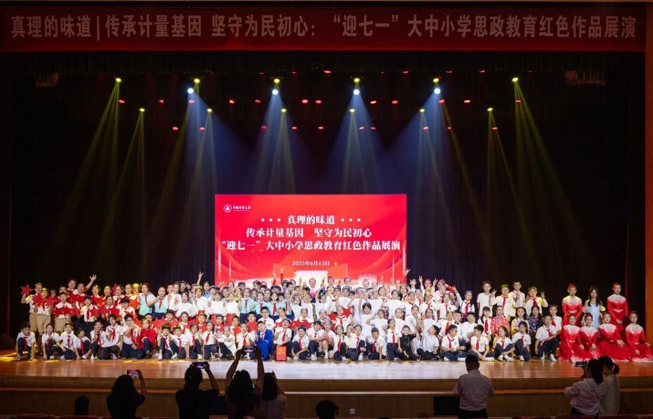 為慶祝中國共產黨成立104周年,深化大中小學思想政治教育一體化建設,6月13日,中國計量大學宣傳部、組織部、學工部、團委、馬克思主義學院聯合杭州江南實驗學校、杭州啟成學校、杭州采荷第一小學教育集團、杭州市錢塘區云帆小學、杭州市錢塘區義蓬第二小學、杭州市文海啟源中學、杭州市錢塘區義蓬中學等學校共同舉辦“真理的味道:傳承計量基因 堅守為民初心”迎七一紅色作品展演活動,生動展示出一場融合革命精神與計量文化、貫通大中小學各學段的思政教育盛宴。中國計量大學黨委副書記程剛、浙江省教育廳宣傳統戰處二級調研員胡華躍、錢塘區教育局副局長江志明等領導和嘉賓參加活動。