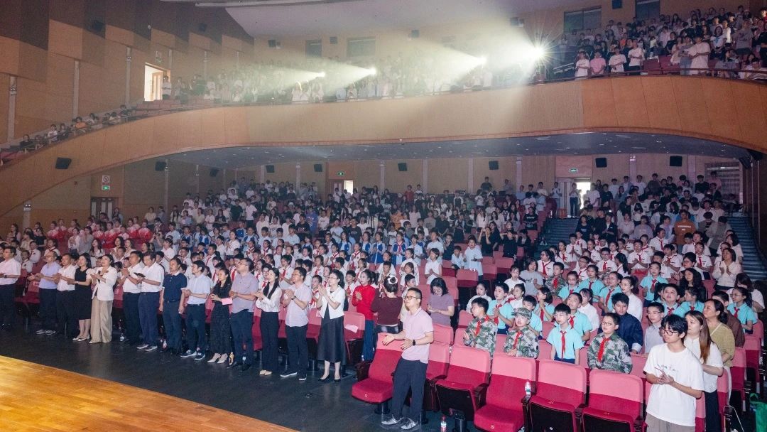 在“未來征途·精量中國”篇章,啟成學校的詩朗誦《仰望星空》表達了少年兒童對航天科技、星辰大海的向往,唱響了“科技強國”的夢想。文海啟源中學的歌伴舞《追尋》,唱出舞出了新時代青少年追尋革命足跡、賡續紅色血脈的決心。“它的容量只有一升,體格不大,顏值不高,隱約可見的銘文卻暗示著它并非尋常之輩。”中國計量大學的影片講解《商鞅方升》,帶領觀眾領略“以規矩成方圓”的治國理念,深刻揭示了從古至今“精量”對國家治理和社會發展的重要性。展演最后,全場師生高唱《我們走在大路上》,在意氣風發、斗志昂揚的雄壯歌聲中,活動圓滿落幕。