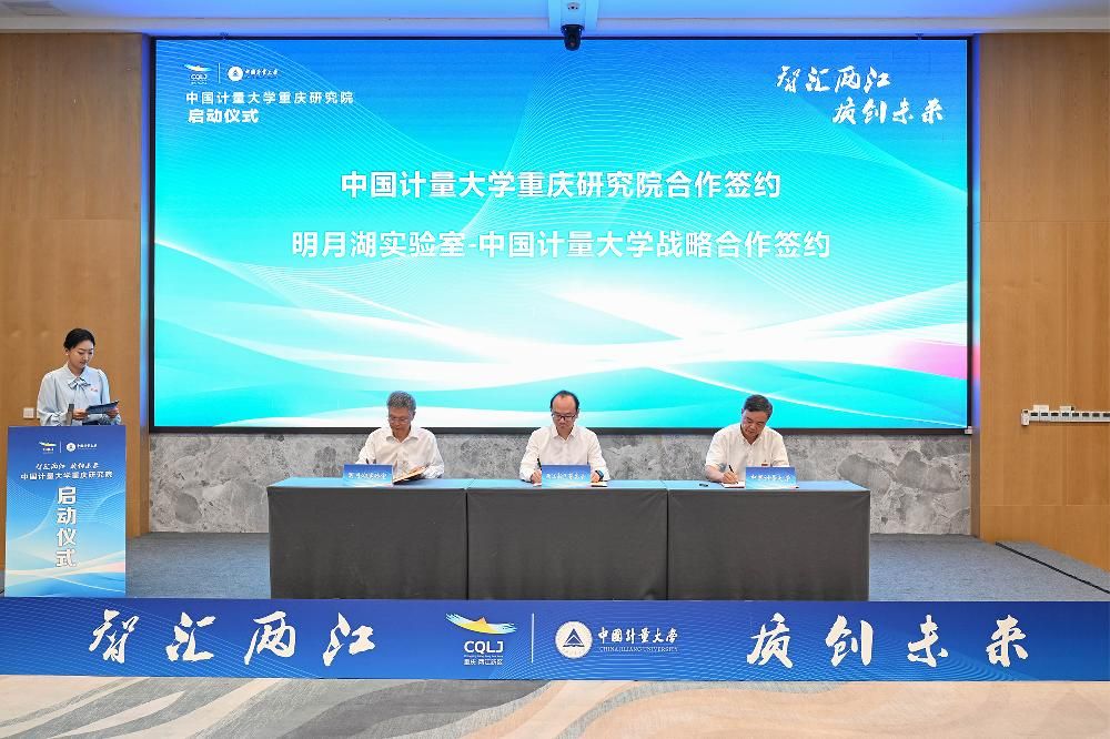 活動中,我校與兩江新區管委會簽訂《共建中國計量大學重慶研究院合作協議》、與明月湖實驗室簽訂《明月湖實驗室—中國計量大學戰略合作協議》,各方將在平臺建設、團隊引進、產業賦能等方面建立深度合作關系,共同服務區域科技創新與產業升級。