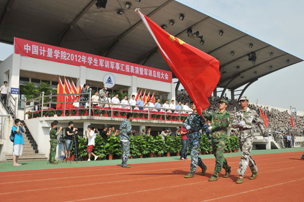 副校長馮時林宣讀了《關于表彰中國計量學院2012年度學生軍訓優秀方隊、軍訓優秀組織單位等先進稱號獲得者的決定》,宣布了軍訓優秀方隊、軍訓優秀組織單位、軍訓積極分子、軍訓優秀教官、軍訓先進個人和軍訓內務先進排的評選結果。