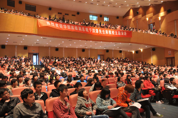 講座中,于洪澤首先分析了大家普遍存在的看待生活的誤區,并從新視野、新思路和新方法這三個角度出發,向同學們闡述了什么是幸福以及他對幸福的理解。他告訴同學們,幸福是心理欲望得到滿足時的狀態,是一種持續時間較長的對生活的滿足和感到生活有巨大樂趣并自然而然地希望持續久遠的愉快心情。幸福是每個人自己定義的,這是人們的權利,也是人們的義務和責任。所謂新方法,于洪澤希望同學們掌握獨立思考的本領,用自己的理論和知識體系解讀社會,不斷優化自己的能力,從而走到幸福的拐角。于洪澤在講座中通過大量生動的案例告訴同學們,要理性面對就業形勢,平衡心態,學會自己經營自己的人生;要早日規劃自己的職業生涯,積極參加社會實踐,增強解決實際問題的能力,不斷積累各方面的經驗,使自己更好地適應社會。
