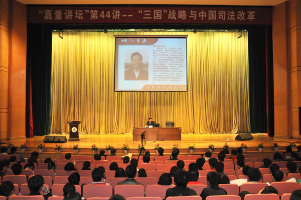 11月10晚,在同學們熱烈的掌聲中,浙江工商大學訴訟法學研究中心主任、第四屆全國十大杰出中青年法學家譚世貴教授走進嘉量講壇,做了題為《“三國”戰略與中國司法改革》的主題講座。本次講座由黨委宣傳部、校團委和法學院共同舉辦。