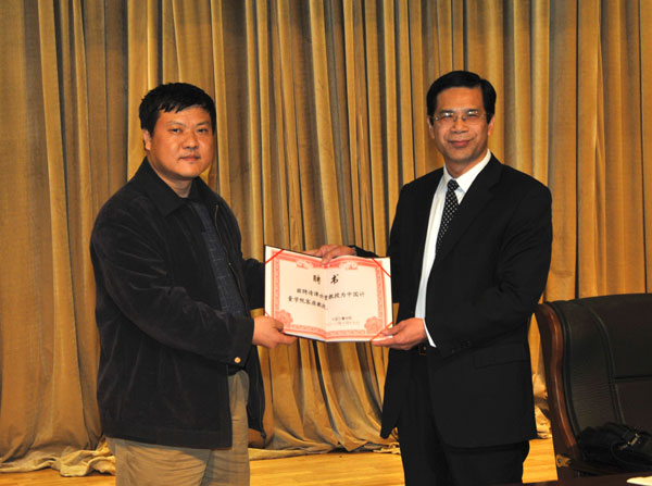 講座開始前,我校法學院院長楊凱教授為譚世貴教授頒發了聘書,聘請其擔任我??妥淌?。