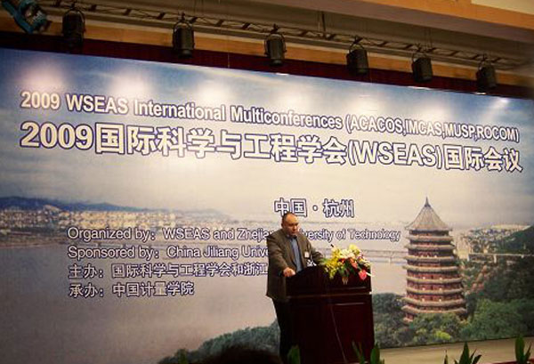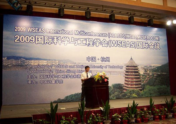 2009年5月20日上午在浙江世貿(mào)君瀾大飯店世貿(mào)廳舉行了由中國計(jì)量學(xué)院承辦的2009年WSEAS(World Scientific and Engineering Academy and Society)-Hangzhou國際會(huì)議的開幕式。中國計(jì)量學(xué)院校長林建忠教授擔(dān)任2009年WSEAS-Hangzhou國際會(huì)議主席,會(huì)議的具體籌辦工作由機(jī)電工程學(xué)院和國際交流與合作處承擔(dān)。會(huì)議開幕式由機(jī)電工程學(xué)院學(xué)術(shù)骨干嚴(yán)天宏博士主持,林建忠校長致開幕詞,WSEAS總部代表Valeri M.Mladenov教授在開幕式上發(fā)言,國際交流與合作處吳宏寬處長、機(jī)電工程學(xué)院李青教授以及我校的論文作者和部分研究生參加了開幕式。