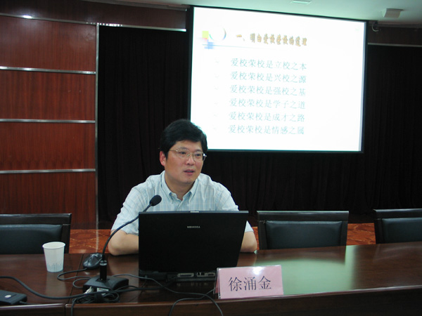 徐涌金教授首先通過我校對學生抽樣調查的案例,指出加強愛校榮校教育的重要性,并從六個方面對愛校榮校進行了詳細的闡述。