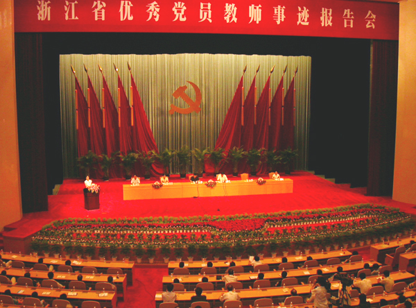 根據浙江省省屬高校保持共產黨員先進性領導小組的要求和學校先進性教育活動學習動員階段集中學習教育的安排,為進一步弘揚優秀共產黨員先進事跡,9月5日我校選派57名教師黨員代表到省人民大會堂參加由省委教育工委舉辦的“優秀共產黨員、林學院博士邵志鵬和舟山市楊蘭娟事跡報告會,學校黨委對這次報告會十分重視,校黨委副書記于永明親自帶隊參加,各黨總(直)支書記或副書記也各負其則,認真組織教師黨員代表參加。