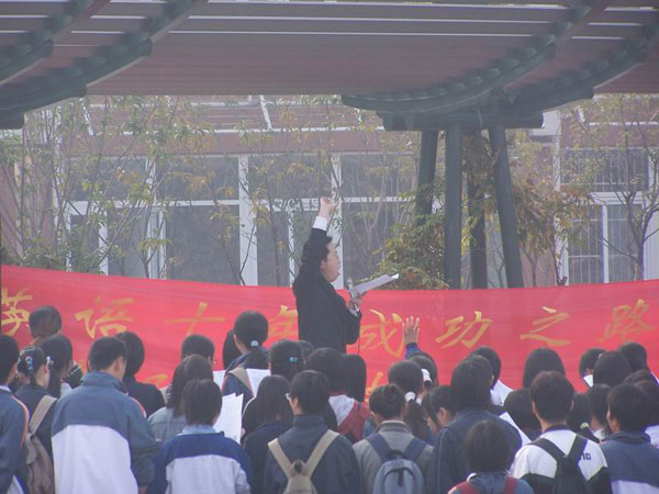 10月29日清晨6點10分到7點40分,由外國語學院承辦的中國計量學院站瘋狂英語晨讀操練會在湖畔廣場舉行。本次活動的主題是《口語突破四級作文必備句型》,是由李陽瘋狂英語杭州高校部主辦的大型晨讀系列活動之一。