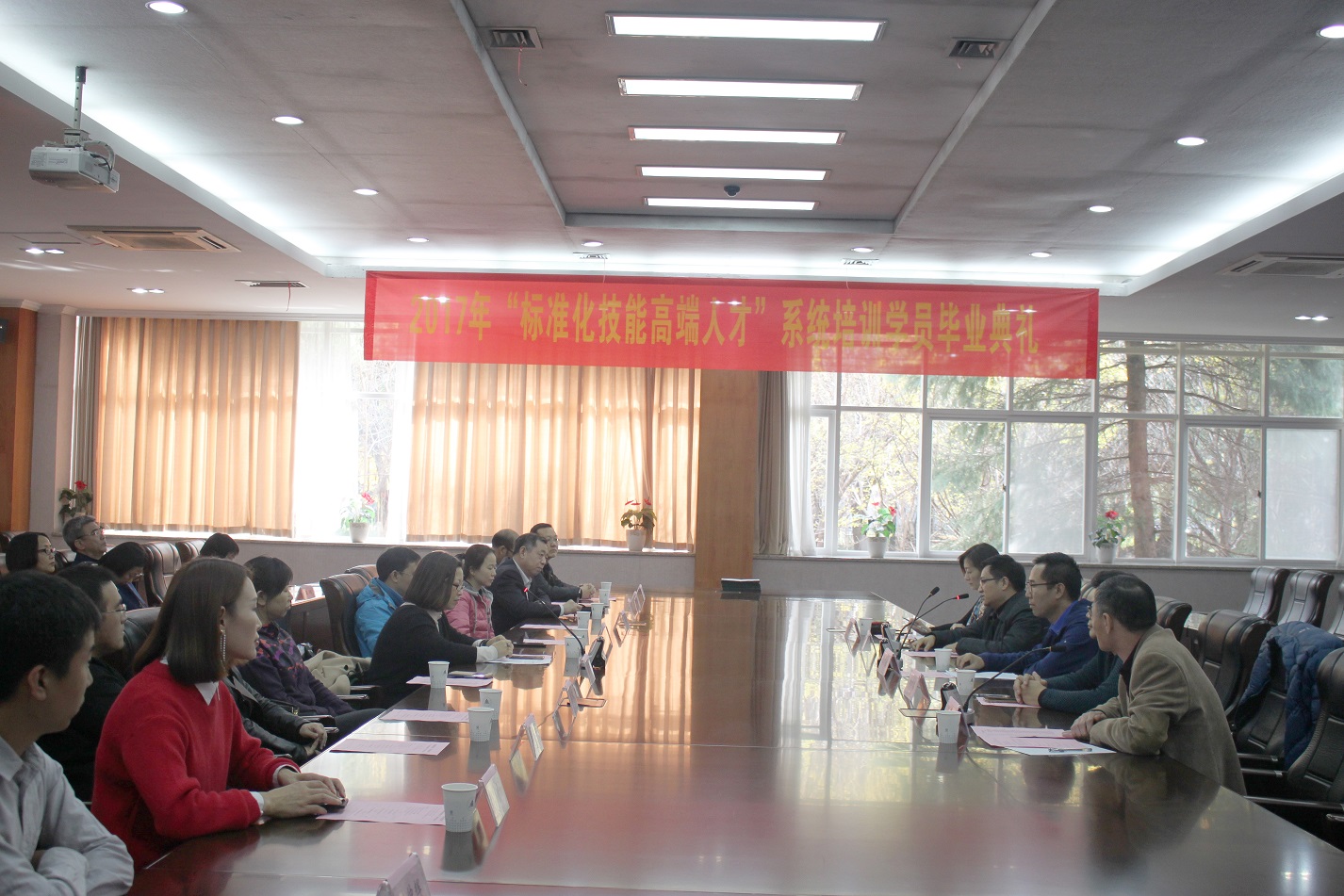2017年11月26日,中國標準化協會和中國計量大學聯合開展的“標準化技能高端人才”系統培訓項目第二批獲證學員在中國計量大學舉行了隆重的畢業典禮。中國標協副秘書長張秀春、計量大學經濟與管理學院院長樂為為學員頒發證書,并與學員合影留念。共有34名學員完成全部課程和論文答辯,獲得《標準化技能高端人才證書》。