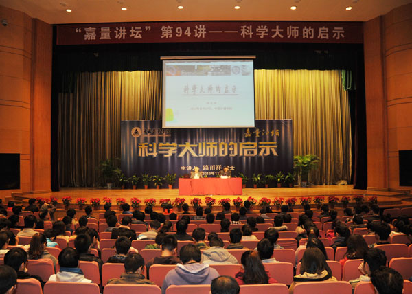 “大師們走上科學道路都是由于對科學的興趣和熱愛,而不是為了追逐名譽和地位。”路甬祥院士指出,對科學的興趣和熱愛、淡泊名利、不怕失敗、執著探索,是他們走上科學道路并取得重大成就的重要原因。他通過居里夫人對研究放射性物質極大的興趣最終獲得諾貝爾獎的例子,使聽眾對此有更深刻的理解。