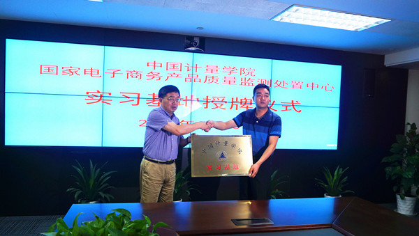 2015年7月15日上午,中國計量學院與國家電子商務產品質量監測處置中心簽署研究生聯合培養協議,并進行中國計量學院實習基地掛牌儀式。中國計量學院副校長俞曉平教授,質安學院院長陳永良教授,副院長王強教授及安全工程專業黨支部書記李琛博士一行四人出席了簽署儀式。杭州市質量技術監督局副局長羅林鋒,國家電子商務產品質量監測處置中心主任范寧,副主任劉松國進行熱情接待。
