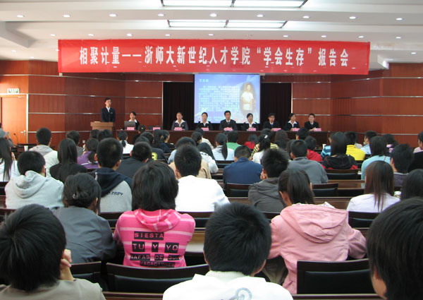 11月10日,應我校邀請,浙師大新世紀人才學院“學會生存”報告會在我校明德樓北6樓會議室隆重召開。校各級學生組織和二級學院學生代表200余人參加了報告會。
