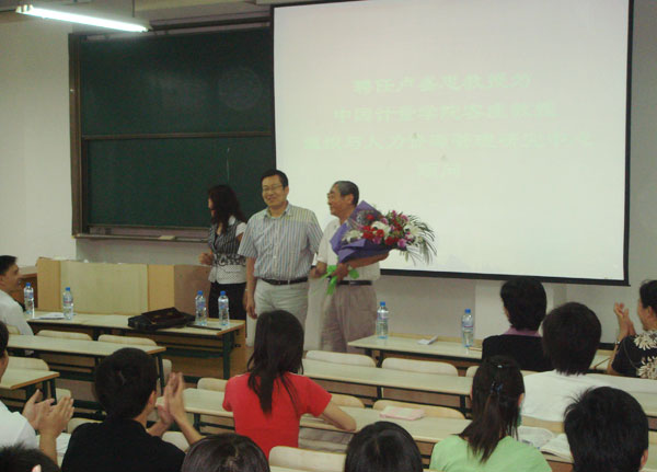 成立儀式結束后,盧盛忠教授為在場師生作了題為“21世紀組織行為研究面臨的挑戰(zhàn)”的學術報告。盧教授簡要介紹了行為科學及組織行為學的概念,并結合實例生動而具體的解釋了該學科的發(fā)展現狀和前景。他對21世紀組織行為研究面臨的挑戰(zhàn)分別進行了闡述,其主要包括經濟全球化、勞動力的變化、顧客期望變化以及組織的變化等方面。在總結各種挑戰(zhàn)的基礎上,盧教授指出:21世紀人的管理將成為管理中的重要部分。盧教授鼓勵同學們好好學習,學以致用,為管理事業(yè)做出自己的貢獻。