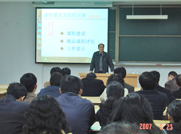 工程訓練中心十分重視對體現實踐教學特色精品課程的提煉和培育,多次召開專題會議,研究和部署相關工作。3月23日下午,工程訓練中心舉行精品課程建設專題講座,由中心主任楊其華教授主講,全體教職工了聆聽了講座。