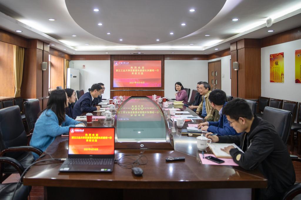4月16日下午,浙江工業大學黨委宣傳部部長於建明一行來校調研。校黨委副書記肖剛熱情接待了客人,宣傳部、外聯處、藝傳學院、資產經營公司相關負責人參加了調研座談會。