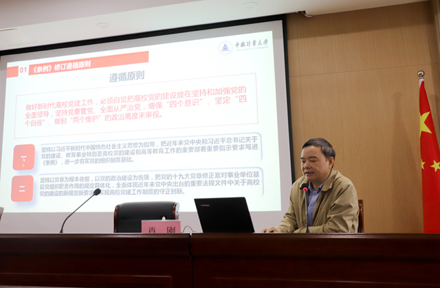 肖剛首先傳達了10月12日浙江省基層黨建工作會議的精神,帶領(lǐng)大家學習了《中國共產(chǎn)黨普通高等學校基層組織工作條例》,詳細介紹了《條例》修訂的背景、過程和意義,并對《條例》的修訂內(nèi)容進行了詳細講解。肖剛強調(diào),《條例》的修訂和實施,對于全面貫徹黨的教育方針,落實立德樹人根本任務,建設(shè)高質(zhì)量教育體系,培養(yǎng)社會主義建設(shè)者和接班人,具有十分重要的意義。各級黨組織要深入領(lǐng)會《條例》精神,全面掌握《條例》內(nèi)容,嚴格遵守和執(zhí)行《條例》規(guī)定。