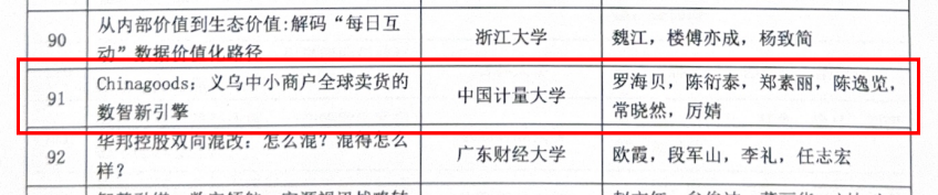 近日,由全國工商管理專業(yè)學(xué)位研究生教育指導(dǎo)委員會指導(dǎo)、中國管理案例共享中心主辦的第十六屆“全國百篇優(yōu)秀管理案例”評選結(jié)果公布。中國計(jì)量大學(xué)羅海貝、鄭素麗和常曉然老師與合作者共同開發(fā)的教學(xué)案例《Chinagoods:義烏中小商戶全球賣貨的數(shù)智新引擎》成功入選。這是本校研究生教學(xué)案例首次入選,實(shí)現(xiàn)了歷史突破。