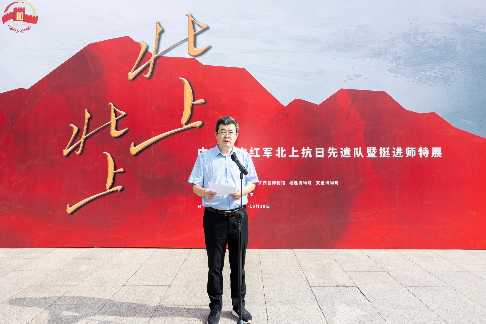 10月16日,“北上!北上!——中國工農紅軍北上抗日先遣隊暨挺進師特展”中國計量大學站開幕式在嘉量大會堂前舉行。校黨委副書記王迪釗出席特展開幕式并致辭。開幕式由校黨委委員、宣傳部部長陳永強主持。相關職能部門負責人和師生代表參加開幕式。