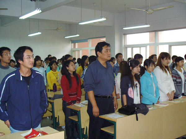 11月8日下午3:30 人文社科學院在環宇樓C202隆重舉行了第31期黨校培訓班開學典禮。該學院黨總書記張新建及全體新學員參加了典禮。典禮由培訓班班主任魏殿林主持   此次黨校培訓班是人文社科學院獨立開辦的、規模最大的一期黨校,共有100名學員。開學典禮在全體齊唱《國際歌》中拉開了序幕。魏殿林介紹了學習班的基本組成情況、學習形式和教學計劃,并對學習紀律和考勤、考試方法等提出了明確的要求。黨校培訓班班長許??宇代表31期黨校學員的發言,保證將認真學習,積極向黨組織靠攏,并表達了希望早日加入中國共產黨的強烈愿望。   典禮上,張新建作了重要講話。他指出,黨課學習是入黨的重要環節,是廣大優秀青年靠近黨、了解黨的寶貴機會。目前正值黨員先進性教育活動開展期間,張新建著重強調了端正入黨動機和加強黨員意識教育的重要性,勉勵各位學員認真學習黨的基本知識、方針政策,向黨員看齊,樹立起共產黨員強烈的責任感和使命感。并在平時的學習生活中注重理論聯系實踐,發揮出先鋒模范作用。張新建希望黨課學員能珍惜機會,并預祝他們在黨校學習期間取得好成績。